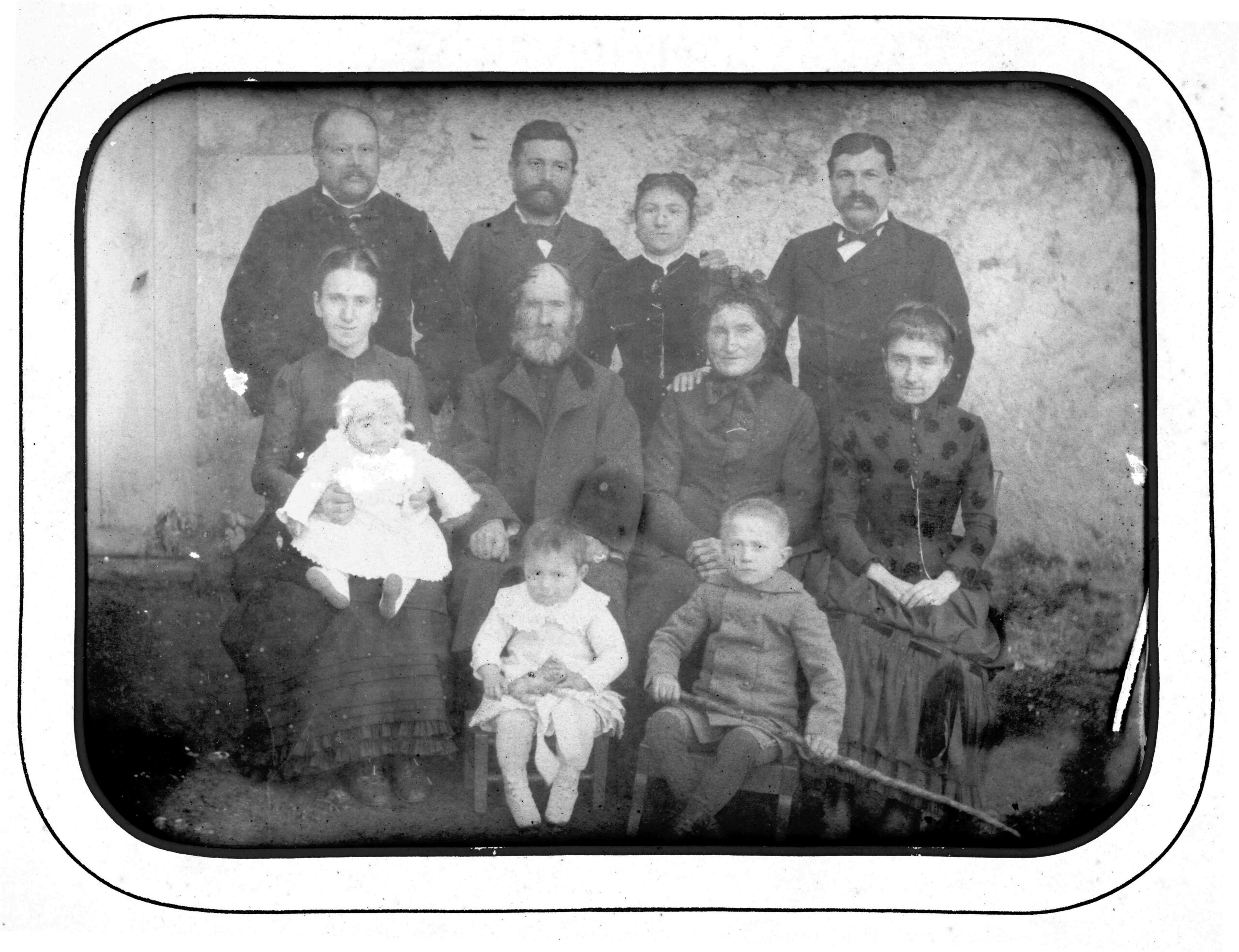 Sur la photo en-tête de cet article, on peut reconnaître de gauche à droite, sur la rangée du haut : Adrien Nau l’époux de Marie, Antonin Thomas, Eudoxie Roux son épouse, Pierre Debordes l »époux d’Elodie ; sur la rangé du milieu : Marie Thomas, Prosper Thomas et sa femme Thérèse Zulmée, Elodie ; enfin, sur la rangée du bas, les enfants de Marie et d’Adrien : Jeanne, René et Edouard. On peut dater cette photo entre 1884 et 1891.